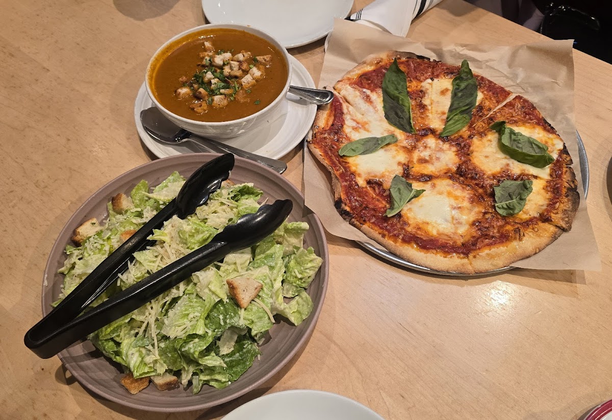 Wonderful! Friendly greeting at the door. Open, comfortable seating inside and out. The mushroom bruschetta was so flavorful. Sausage and Mushroom Pizza was wafer thin, crisp and loaded with flavor. Pozole soup was clean and packed with flavor, avocado and chicken. Absolutely recommended when you are in Sonoma